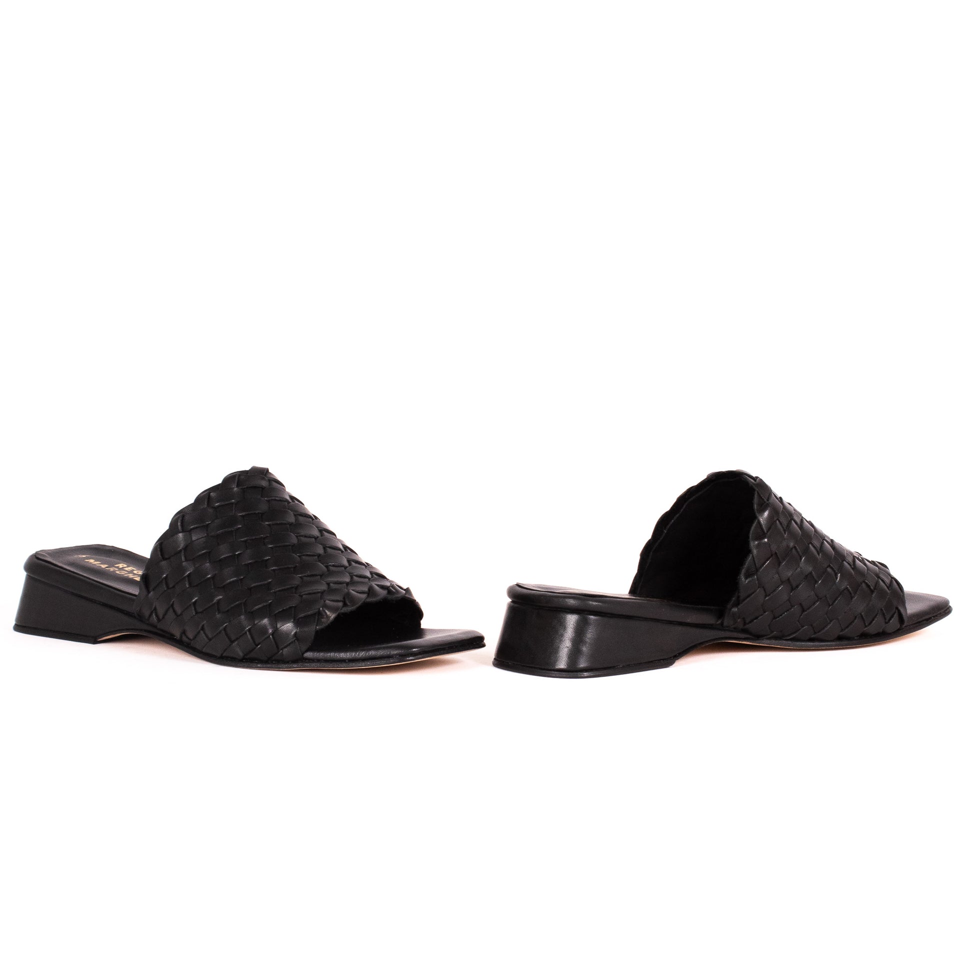 Sandalia confeccionada integramente en cuero vacuno color negro, forrería en cuero y plantilla acolchada, con detalle de tira trenzada artesanal hecho a mano, plantilla acolchada, con taco chino.
